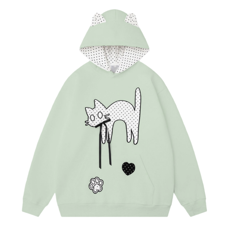 Cute Polka Dot Cat Embroidered Hoodie