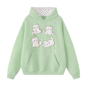 Cute Polka Dot Cat Embroidered Hoodie