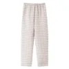 Crafted from 100% pure cotton, these pants offer a soft, breathable, and skin-friendly texture. The woven plaid pattern adds depth and style while maintaining a comfortable and natural feel for all-day wear.